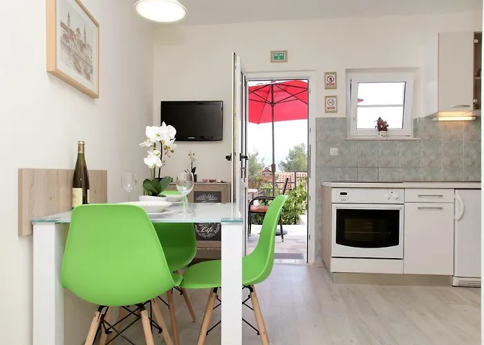 A partra néző tengerparti Apartments Viki Trogir egy 25 perces sétára található a Trogiri marinától Trogirban. Az apartman egy teraszt kínál tengerparti kilátással a kertre.